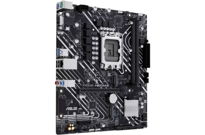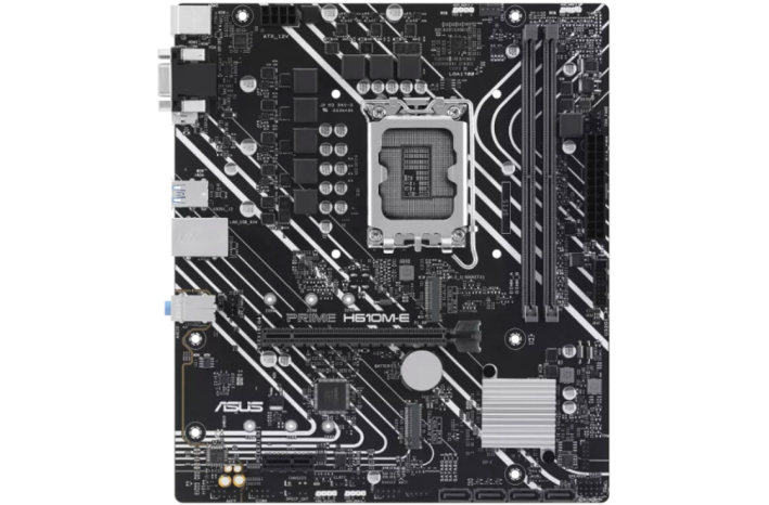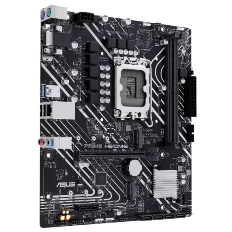 ASUS Prime H610M-E-CSM je matična plošča Intel H610 (LGA 1700) mATX z DDR5, PCIe 4.0, režo M.2, Realtek 1 Gb Ethernet, DisplayPort, HDMI, VGA, vrati USB 3.2 Gen 1, SATA 6 Gbps, COM glavo in Aura Sync.