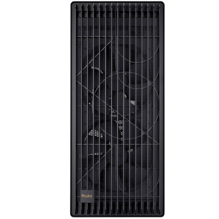 Infrardeči indikator prahu na sprednji plošči za ohranjanje vrhunskega pretoka zraka. Namestitev grafične kartice brez orodja, elegantna estetika na temo ProArt.