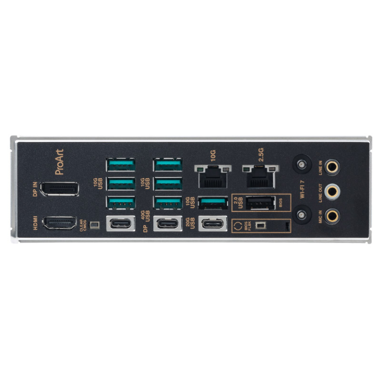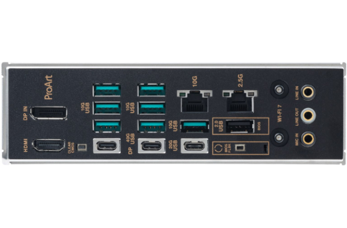 Potopite se v svoje ustvarjanje z dvema priključkoma USB4 za povezavo z vsemi svojimi pripomočki za ustvarjanje vsebine in uživajte v dvosmernem prenosu podatkov do 40 Gb/s. Za nadaljnje pospeševanje ustvarjalnega dela z enim monitorjem 8K ali dvema barvno natančnima monitorjema 4K lahko svojo diskretno grafično kartico povežete z vgrajenimi vrati DisplayPort na zadnji I/O plošči in usmerite video izhod prek vrat USB4.