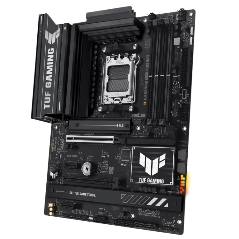 ASUS TUF Gaming B850-Plus WiFi združuje najnovejše AMD Ryzen procesorje z izjemno vzdržljivostjo. Izboljšajte svojo gaming izkušnjo z zmogljivo osnovno ploščo ASUS TUF Gaming B850-Plus WiFi.