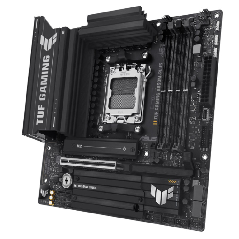 ASUS TUF GAMING B850M-PLUS združuje ključne elemente AMD Ryzen procesorjev z gaming funkcijami in vzdržljivostjo.