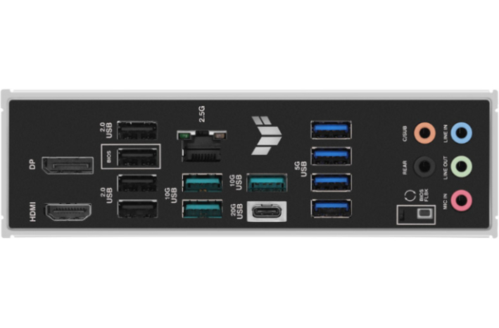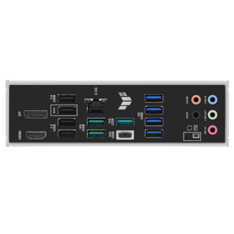 Zunanji konektorji1x USB 3.2 Type-C 20Gbps, 3x USB 3.2 Type-A 10Gbps, 4x USB 3.2 Type-A, 4x USB 2.0 Type-A, 1x DisplayPort, 1x HDMI, 1x Realtek 2.5Gb Ethernet, 5x Avdio, 1x BIOS FlashBack gumb