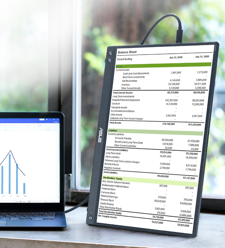 ASUS ZenScreen MB16AHV je zasnovan za življenje na poti. Eleganten zaslon tehta le 0,9 kg in je debel le 10 mm, kar omogoča enostavno prenašanje v potovalni torbi - pripravljen za delo kjerkoli in kadarkoli.