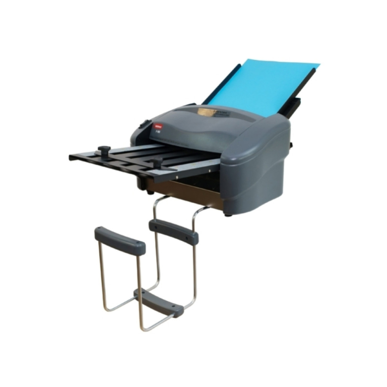Avtomatski namizni zgibalnik papirja Intimus F-150 je majhen in enostaven za uporabo. Omogoča avtomatsko podajanje do 50 listov ali ročno zgibanje do 3 listov naenkrat, ki so lahko tudi speti s sponko.