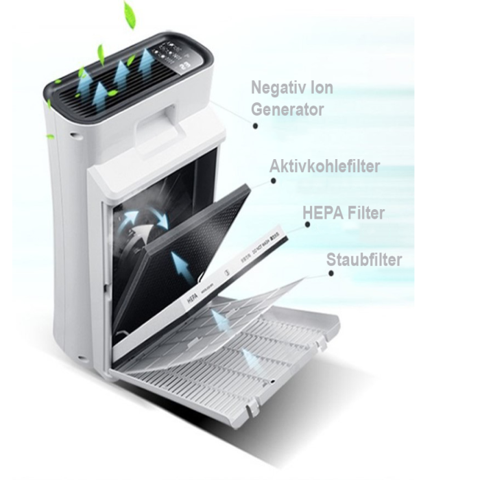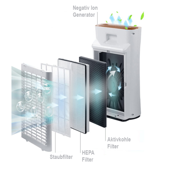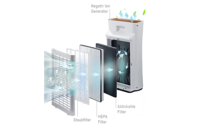 Visoko učinkovit filter HEPA13 lahko filtrira 99,95 % finega prahu, hišnega prhljaja, cvetnega prahu, pršic, onesnaženosti zraka, delcev PM 2,5 in ultrafinih delcev. Zelo pomaga ljudem z alergijami in astmo, lastnikom hišnih ljubljenčkov, kadilcem in otrokom.