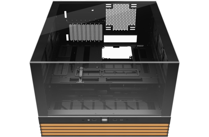 Lahko se preklopi v obrnjen ali vodoraven položaj v nekaj sekundah zaradi intuitivnega dizajna. Dodatno prostorna zasnova omogoča vgradnjo do dva 420mm radiatorja hkrati in E-ATX matično ploščo.