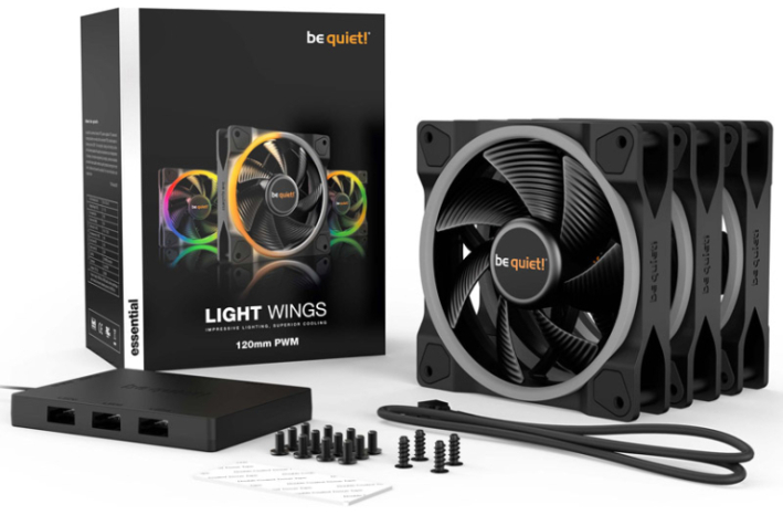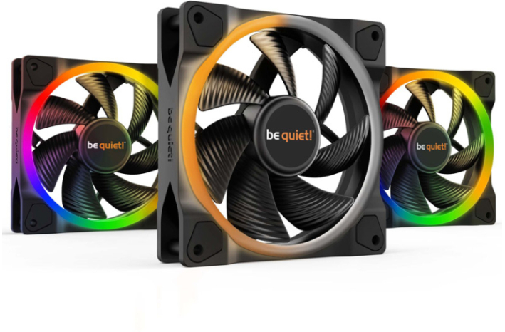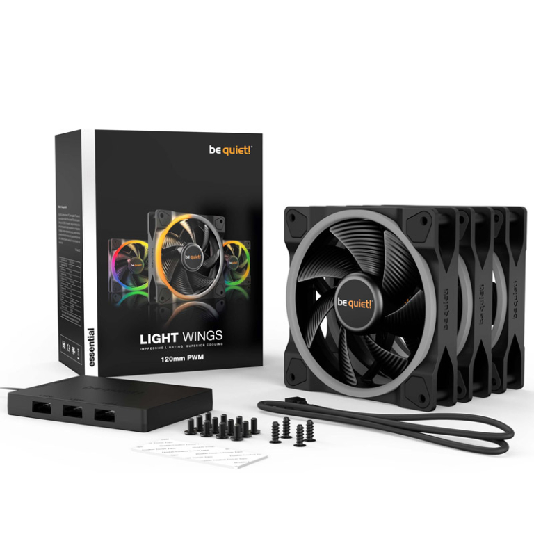 BE QUIET! LIGHT WINGS (BL076) triple pack RGB ventilatorji ponujajo ARGB osvetlitev spredaj in zadaj za izvrsten izgled. Z 20-ARGB LED diodami lahko popolnoma prilagodite svoj osebni računalnik.