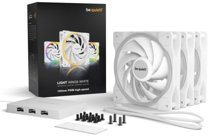 BE QUIET! LIGHT WINGS White High-Speed (BL100) triple pack RGB 120mm 4-pin PWM beli ventilator