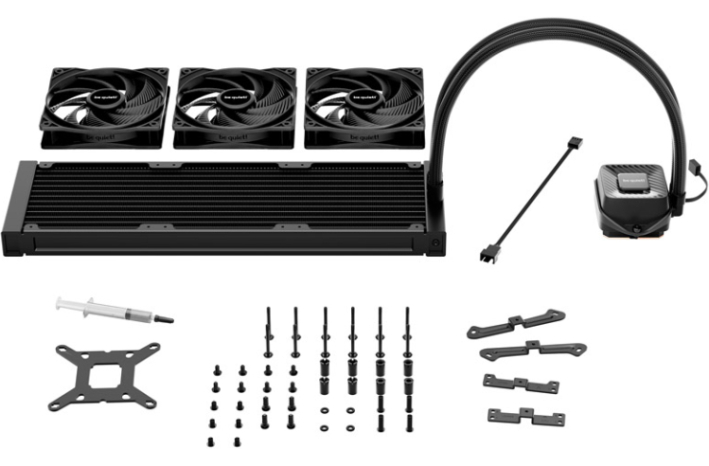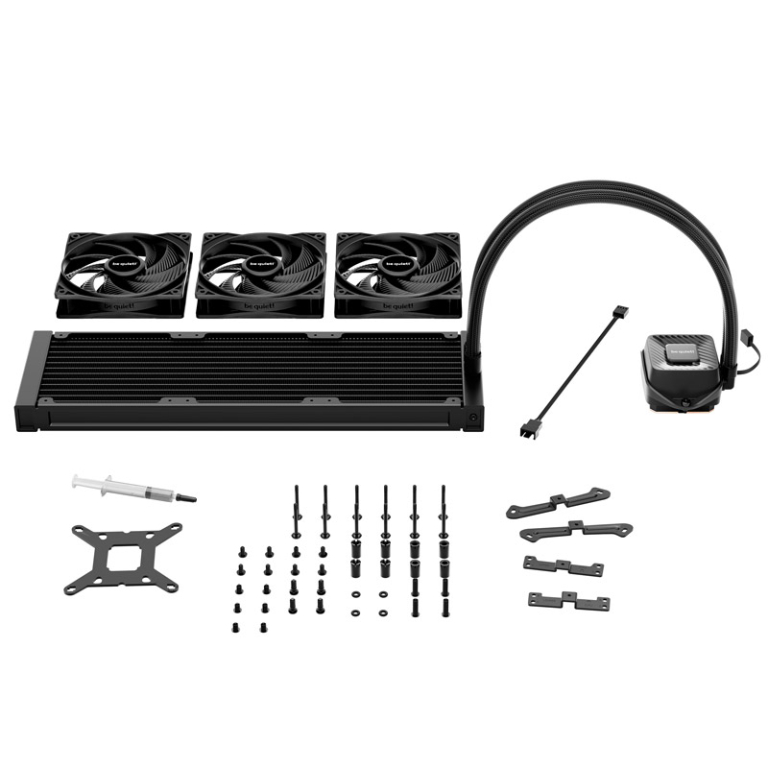 Trije ventilatorji Pure Wings 3 120 mm PWM zagotavljajo visok zračni tlak za učinkovito hlajenje tekočine v radiatorju. Funkcija "closed loop motor" ohranja stalno hitrost ventilatorjev ne glede na upor - idealno za radiatorje. Tudi pri največji hitrosti delujejo pri le 37,2 dB(A). Posebno oblikovan izpust zraka dodatno poveča učinkovitost.