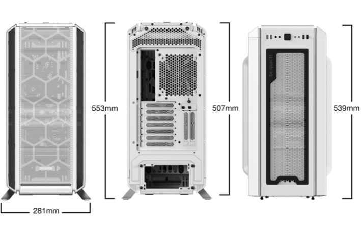 Kakovostna, popolnoma steklena stranska plošča ponuja popoln pogled na komponente v ohišju računalnika.