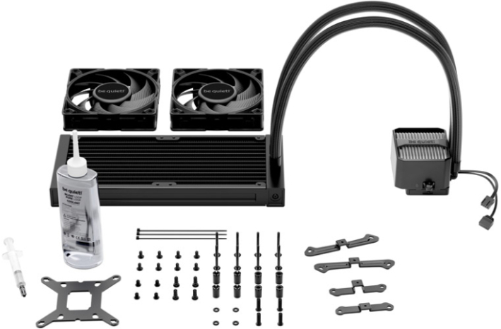 Vsebina paketa:termalna pasta, set za montažo, Y adapter kabel, 100ml steklenička s hladilno tekočino