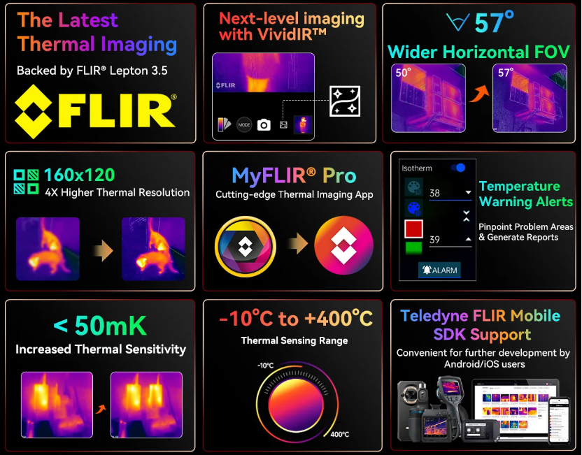 Toplotno slikanje: FLIRe Lepton 3.5,160x120 toplotna ločljivost, MyFLIR ® Pro podpora