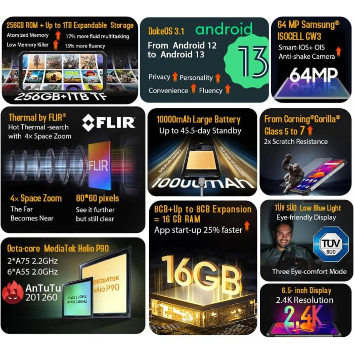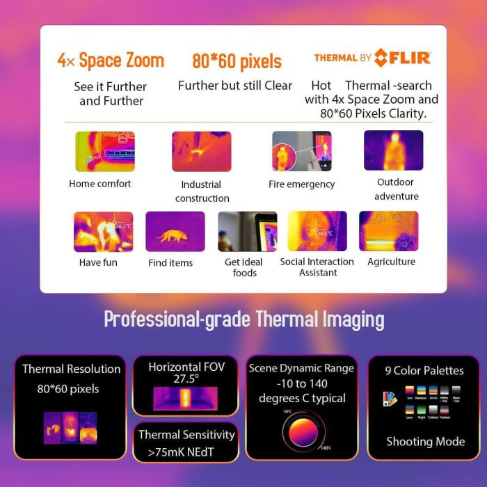 Blackview BV8900, ki ga poganja lepton FLIR® z najvišjo ločljivostjo, ki je na voljo danes, ima več ekskluzivnih izboljšav s 4-kratnim prostorskim zoomom z visoko toplotno ločljivostjo za enostavno zaznavanje vročih točk, prepoznavanje potencialnih nevarnosti in spremljanje temperatur.