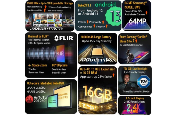 - OS: DokeOS 3.1, ki temelji na Androidu 13