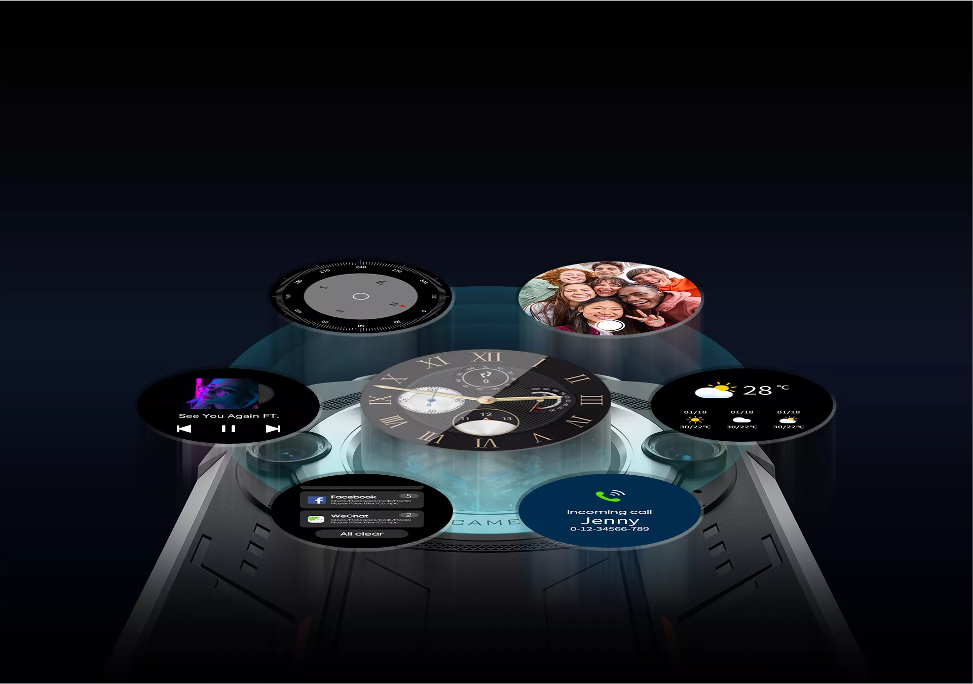 Zadnja stran: Okrogel sekundarni zaslon z velikostjo 1,32 palca, ločljivost 360*360