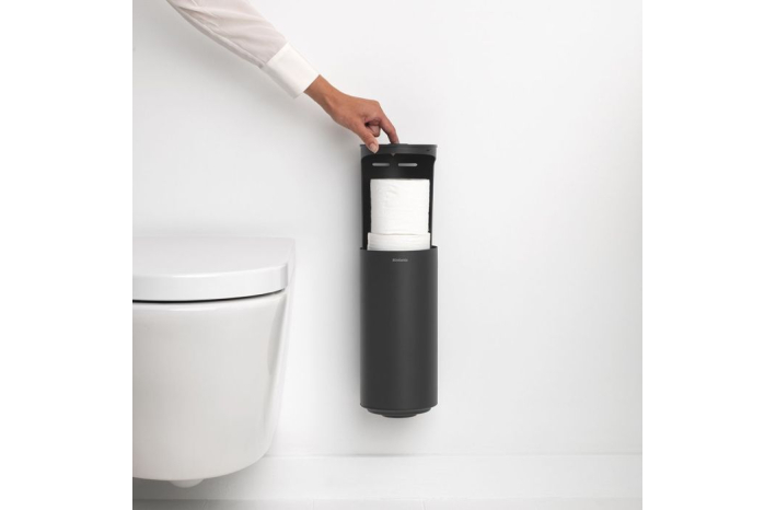 • Shramba – zaprt razpršilnik toaletnih zvitkov za shranjevanje 2 rezervnih zvitkov, s pametnim dvižnim sistemom za enostavno polnjenje.