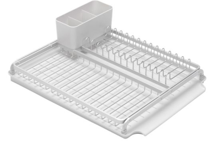 Brabantia odcejevalnik za posodo je elegantne oblike, ki ponuja veliko prostora za sušenje posode. Poseben podstavek poskrbi, da odvečna voda odteka direktno v lijak, tak oda vaša delovna površina ostane suha in čista. Ima žični okvir iz nerjevečih materialov in je opremljen s snemljivim držalom za jedilni pribor.
