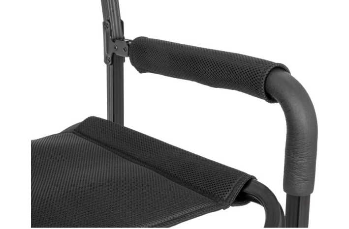 Direktorski stol s klasičnim okvirjem iz pravokotnega profila iz praškasto lakiranega aluminija. Zaradi zložljivega naslonjala je prostorsko varčen. Sedež je izdelan iz oblazinjene tkanine 3Durafeel, ki diha. Oblazinjeni in oblazinjeni nasloni za roke. Zelo kompakten in enostaven za pospravljanje, ko je zaprt.