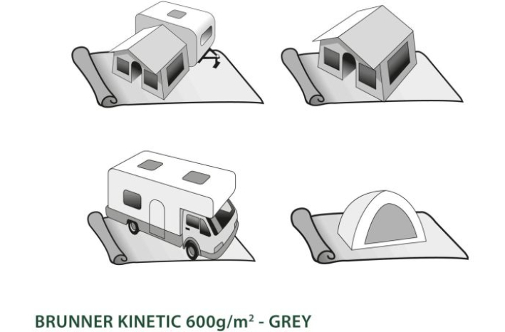 Visokokakovostna preproga za tende, popolnoma primerna za potovanja ali stalno kampiranje. Enostavna za kombiniranje s senčniki za prikolice in avtodome, rolo senčniki, senčniki in senčniki za avtodome. Izdelana iz sintetičnih vlaken, odpornih na UV žarke. Uporabna obojestransko. Vodotesna, odporna proti gnitju in enostavna za čiščenje. Lahko razrežete na želeno velikost brez nevarnosti, da bi se strgala.