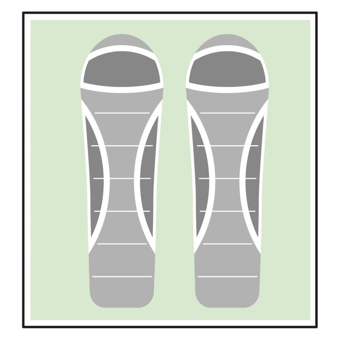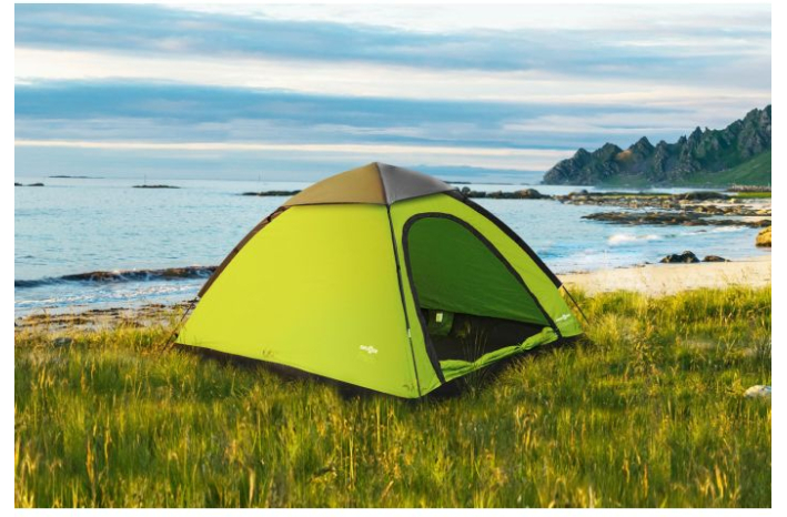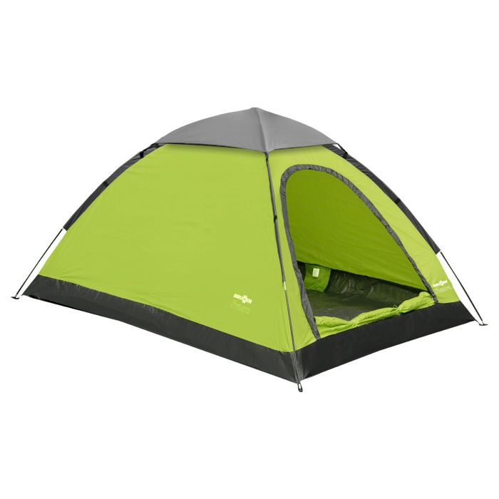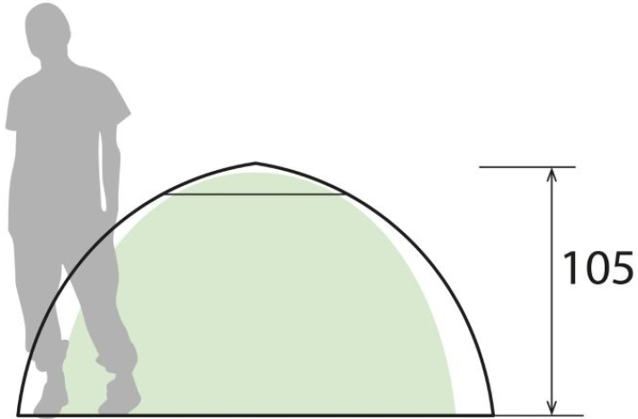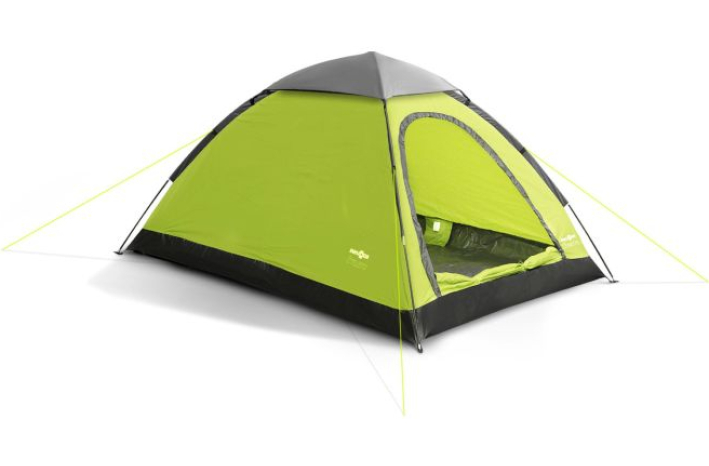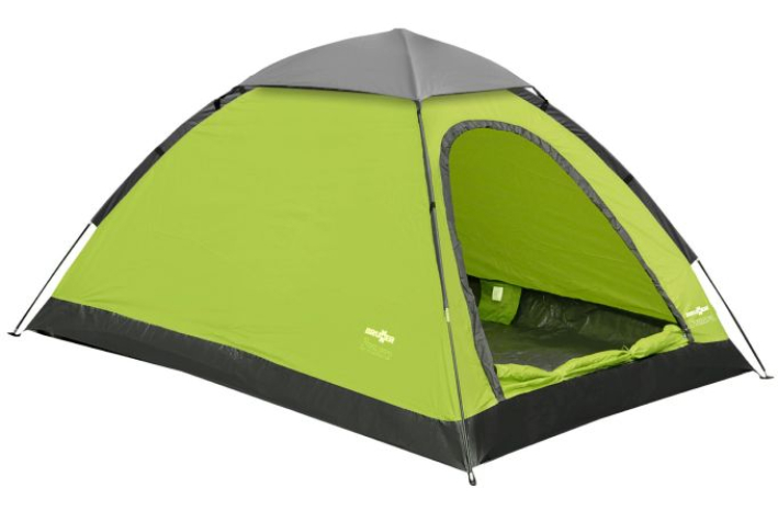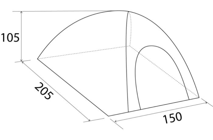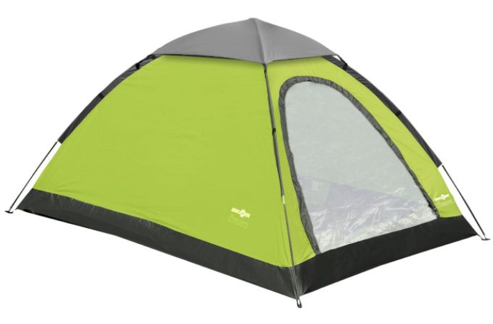 Enoslojni šotor z ventilacijo na strehi in majhnim oknom na sprednjih vratih. Zelo kompaktne mere za shranjevanje. Priloženi so montažni dodatki in torba za prenašanje.