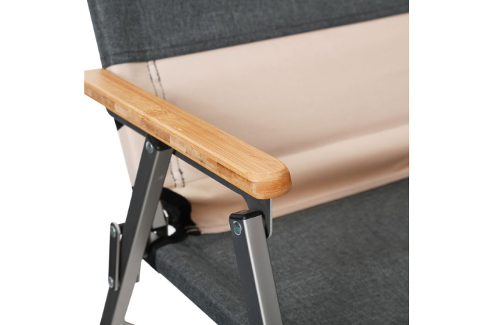 Ultralahek zunanji zložljivi stol, ki ga odlikujejo kompaktna velikost, majhna teža in odlična prenosljivost. Z elegantnimi, gladko obdelanimi lesenimi nasloni za roke. Dve ukrivljeni cevi na hrbtišču in sedežu se lahko uporabljata kot ročaji za prevoz.