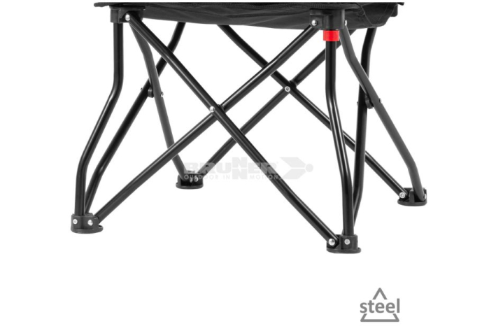 Zložljiv stol s širokimi nasloni za roke, izdelan s posebnim patentiranim okvirjem, ki zaradi svoje oblike preprečuje prevračanje. Izdelan je z lakiranim jeklenim okvirjem in sedežem iz odporne poliestrske tkanine. Zelo enostaven za odpiranje in zapiranje.