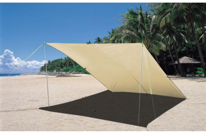 Univerzalna sončna ponjava z več točkami za pripenjanje in napenjanje. Ta ponjava je idealno zavetje pred soncem in dežjem v kampu, na vrtu ali na plaži.