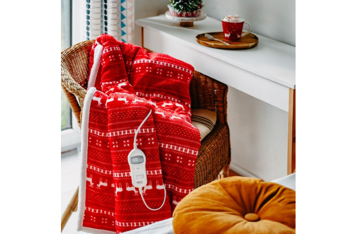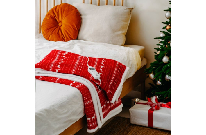 Rdeč in bel flis s prazničnim (božičnim) vzorcem, ki doda čar in slog.