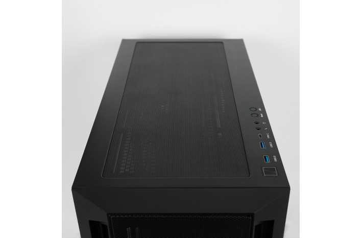Sprednji priključki: 1x USB3.2 Gen2 Type C, 2x USB3.0 , Audio-out (AZALIA / HD-Audio), Mic-In, RGB Mode Button