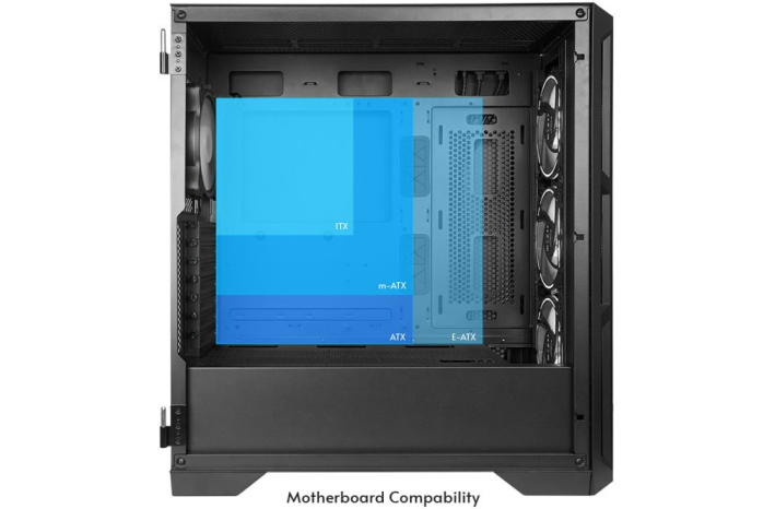 Dodatno: Prozorna stranica, TEMPERED GLASS ob strani, primerno za grafične kartice do dolžine 400mm in procesorska hlajenja do višine 175mm