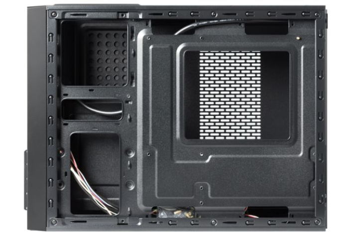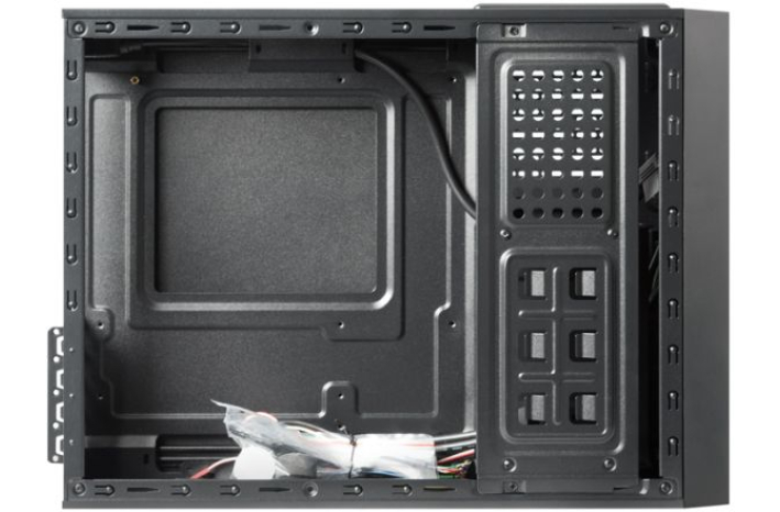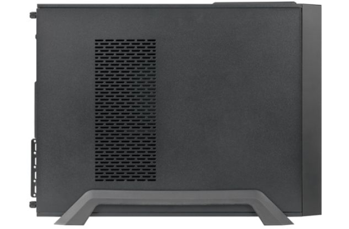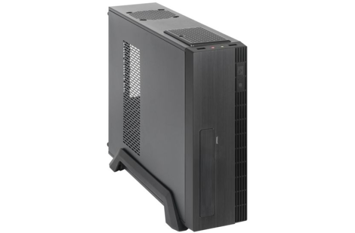 Popolnoma črno ohišje stoji na sodobnem stojalu, kar mu daje dodaten korporativni pridih. Opcijsko je z ohišjem dobavljen tovarniško vgrajen in tiho delujoč napajalnik SFX-250VS (250 W), ki je zasnovan tako, da sprejme do štiri razširitvene kartice na polovični višini in po potrebi dva 8 cm hladilna ventilatorja.