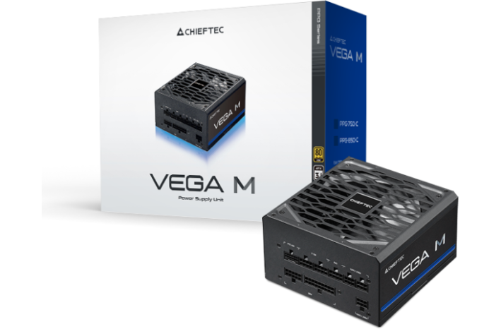Napajalnik CHIEFTEC Vega serije M je izdelan v skladu z Intelovim standardom ATX 12V 3.1 in podpira PCIe GEN5 z učinkovitostjo, certificirano s strani 80PLUS Gold.