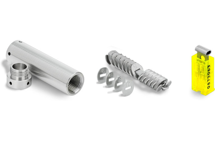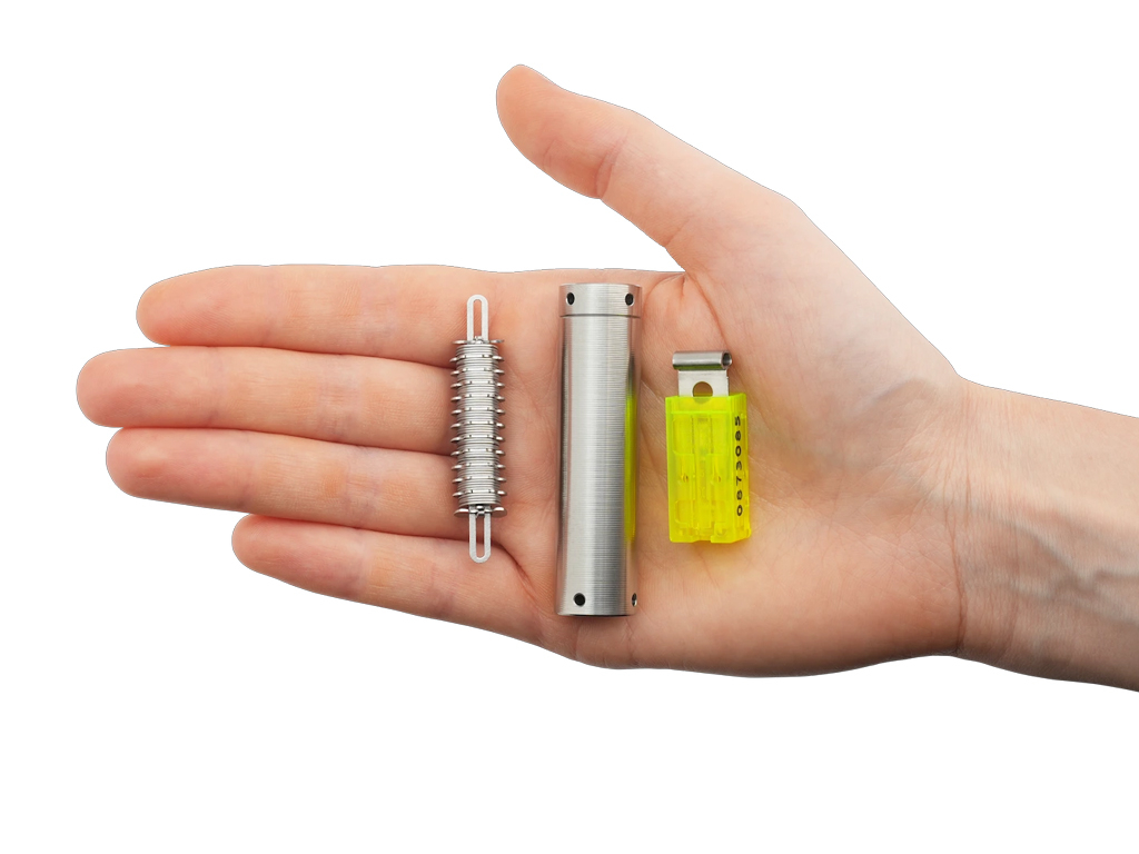 Hermetično zaprta zunanja kapsula. Izdelana je iz kvalitetnega nerjavnega jekla in poskrbi za učinkovito zaščito varnostne kopije v notranjosti. Vsebuje luknje za namestitev varnostne sponke. Zunanjost kapsule je fino brušena in preprečuje prstne odtise.