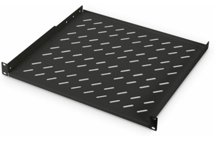 Digitus polica 1U globine 400mm, primerna za vgradnjo v 483mm (19˝) komunikacijsko omaro globine 600mm, perforirana za učinkovitejše hlajenje, nosilnost do 15 kg...