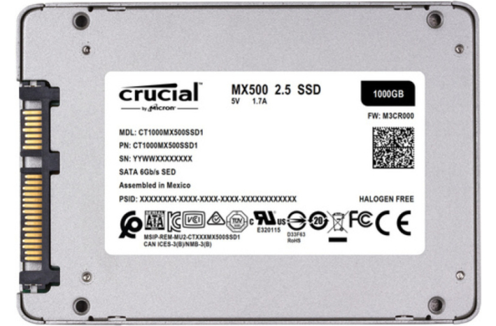 Crucial MX500. Kapaciteta pomnilnika SSD: 1000 GB, Faktor oblike SSD: 2,5 ", hitrost branja: 560 MB / s, hitrost pisanja: 510 MB / s, hitrost prenosa podatkov: 6 Gbit / s, komponenta za: osebni računalnik