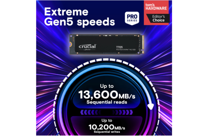 Crucial T705 1TB PCIe Gen5 NVMe M.2 SSD disk