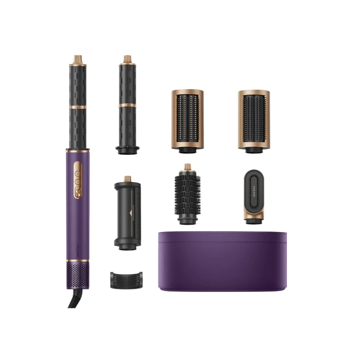 Več nastavkov za različne stile – vključuje 2 auto-wrap nastavka (32 mm za kodranje v nasprotnih smereh), sušilni nastavek, orodje za glajenje štrlečih las, mehko in trdo krtačo za glajenje ter okroglo krtačo za volumen. Vsi nastavki imajo magnetni snap-on sistem.