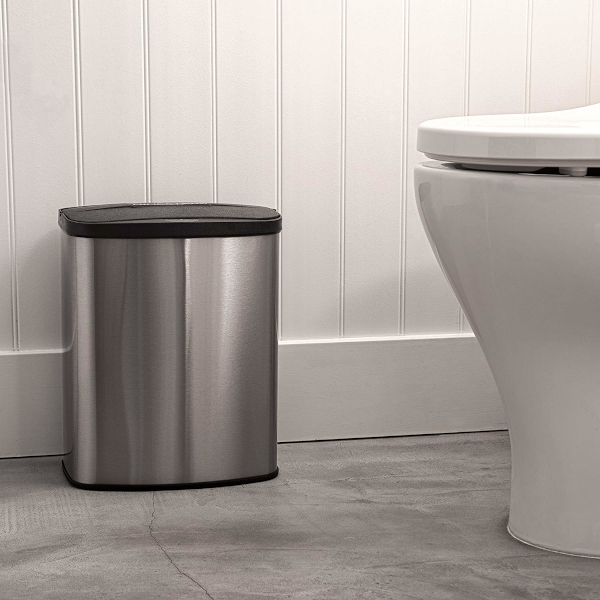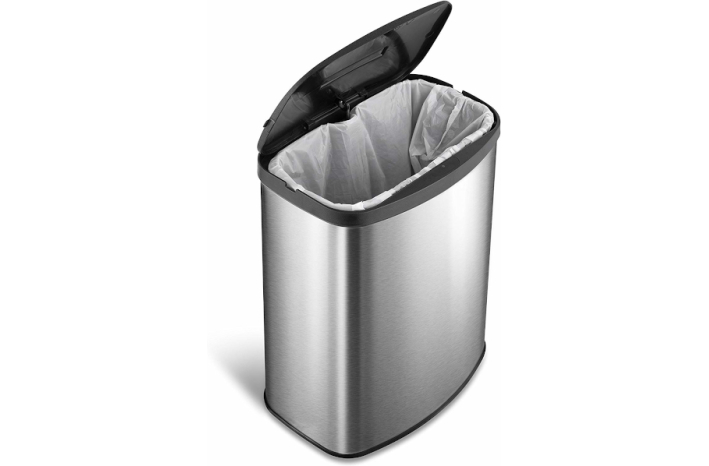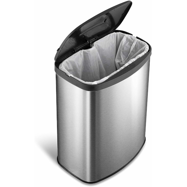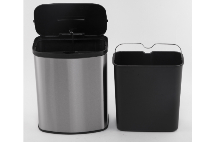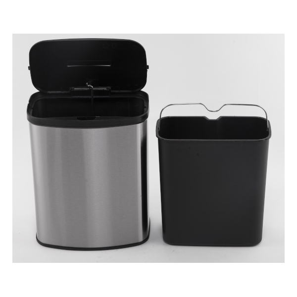 Z vgrajenim senzorjem se koš odpre enostavno z gibi roke, kar omogoča higiensko uporabo brez dotikanja.
