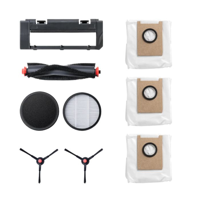 Vključuje: valjčno krtačo in zaščito krtače + 2 visokozmogljiva filtra + 2 stranski krtači + 3 vrečke za prah.
