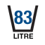 Prostornina posode za odpadke uničevalnika, ki lahko sprejme 83 litrov.