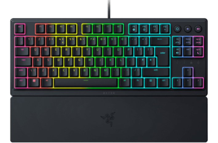 Ornata V3 Tenkeyless je opremljena z nizkimi tipkami. Tipkovnica je visoka 31 in vsebuje Razer Mecha-Membranska stikala, ki podajo lep očutek tipkanja z mehkim zaključkom. Tipke z UV prevleko so bolj odporne na obrabo in praske.