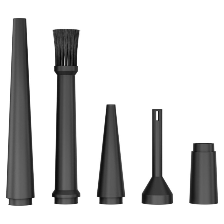 Komplet za čiščenje računalnika s 5 izbirnimi šobami, učinkovito očisti tipkovnico, ohišje računalnika, radiatorje, igrače, sedežne garniture in elektronske naprave. Nastavek z mehko krtačo ne povzroča prask ali poškodb, idealen kot večnamenski spremljevalec v prostem času in na počitnicah.