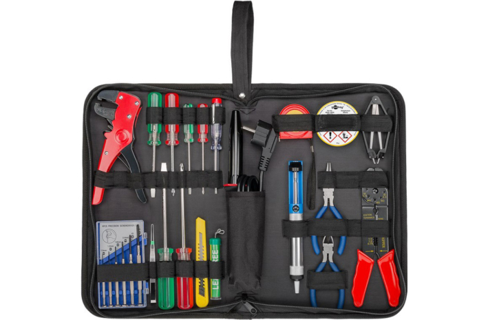Komplet orodja za spajkanje in popravilo računalnikov ter mobilnih telefonov. Idealno za profesionalno delo na poti ali doma.