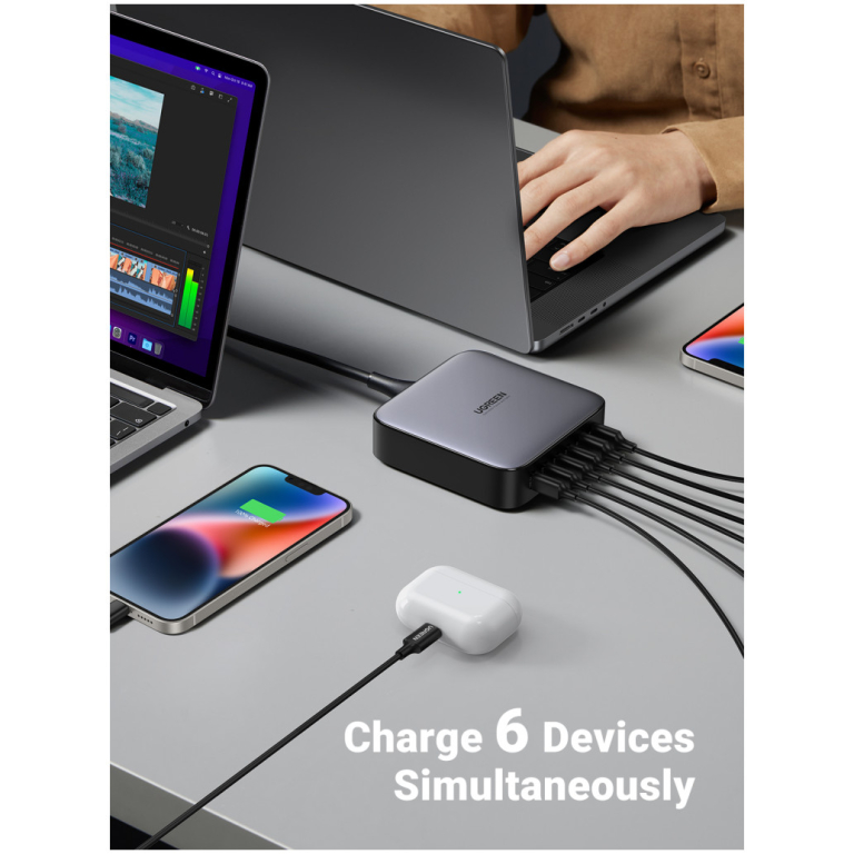 6-portni polnilnik 200 W GaN II x 1 + 200 cm napajalni kabel x 1 + 100 cm polnilni kabel USB C v USB C |