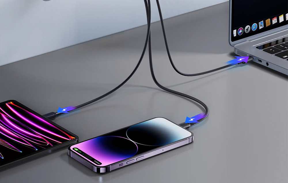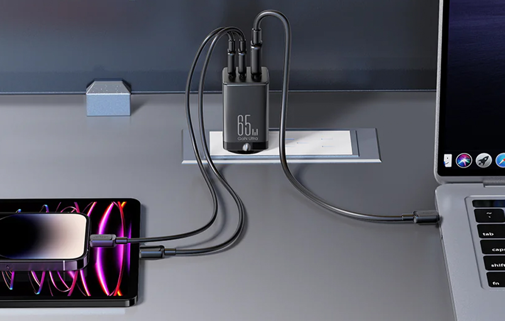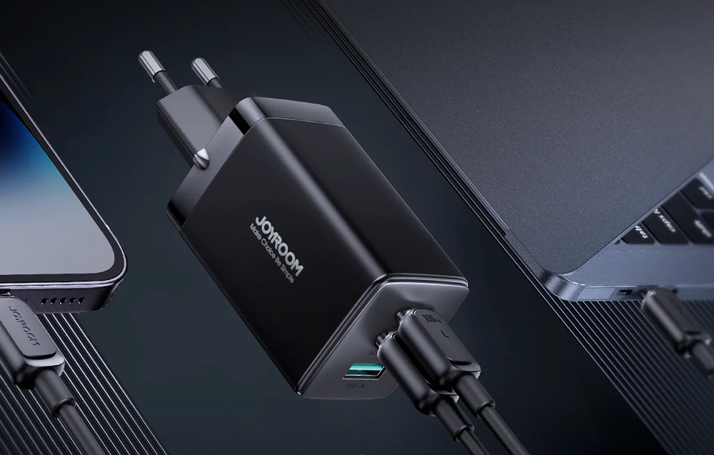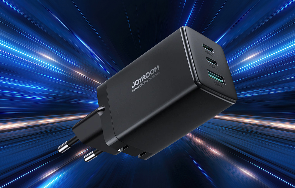 Poskusite to polniti do 3 naprave nenadoma ti je dovolj samo en polnilec. Polnilec Joyroom TCG01 ponuja do 3 vrata (1x USB-A, 2x USB-C) in zagotavlja skupno izhod moči do 65 W. Podpira tudi različneé standardi hitrega polnjenja in uporablja napredna GaN tehnologija. Komponente kompleti so takoé Kabel USB-C na USB-C dolžine 1,2 m in izhodne moči do 100 W.