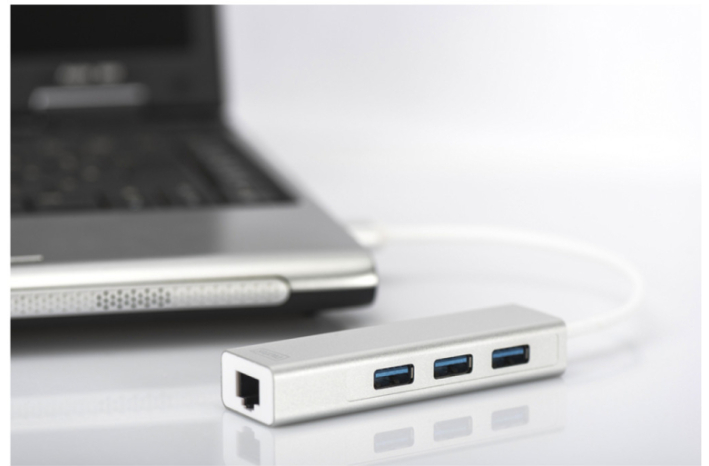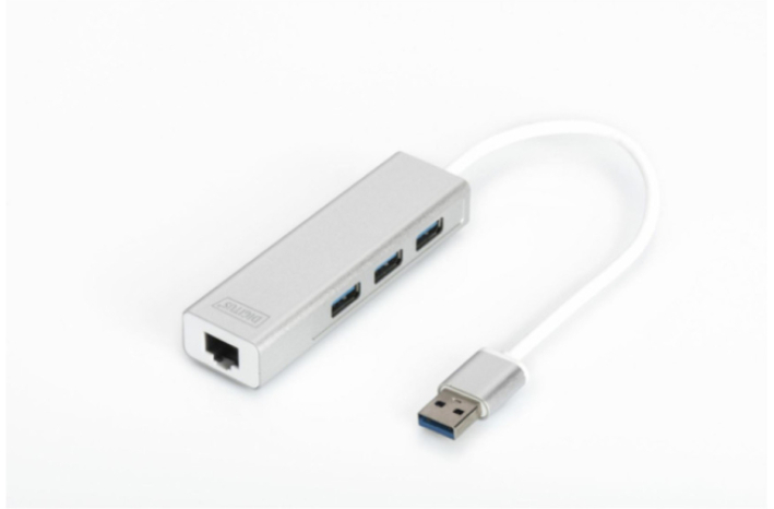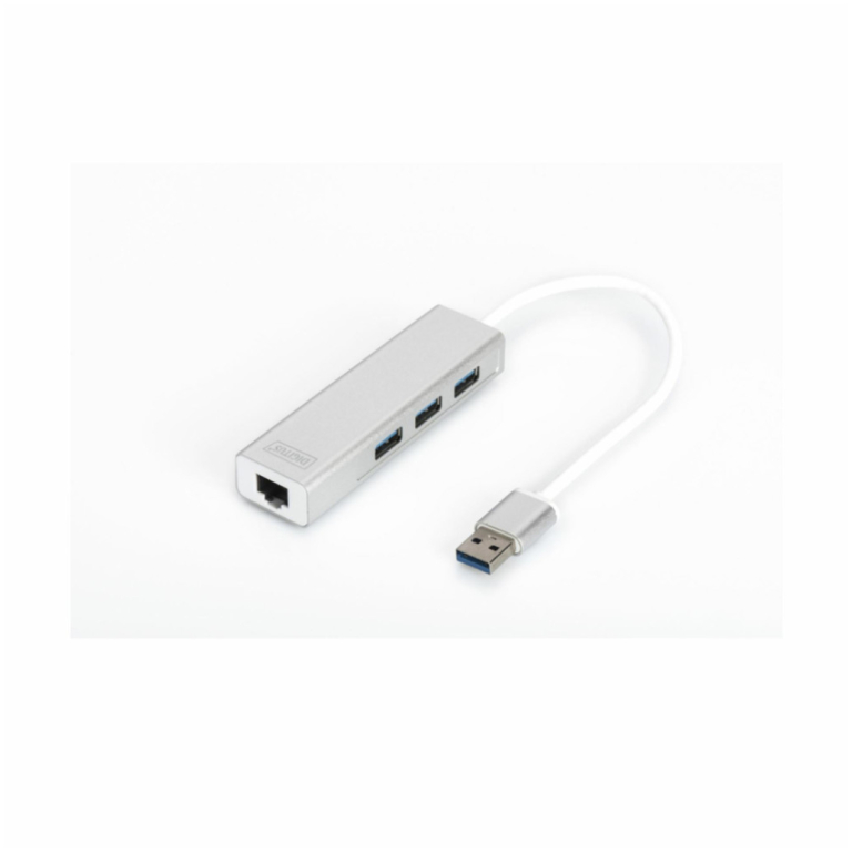 S 3-vratnim zvezdiščem DIGITUS USB 3.0 & Gigabitni LAN adapter, lahko povežete 3 dodatne naprave visoke hitrosti USB 3.0 na vaš Ultrabook, prenosnik, podprenosnik, Macbook, Macbook Air itd. Tiskalnike, trde diske, flash pomnilnik, bralnike kartic, zvočnike in številne druge naprave je mogoče enostavno povezati prek vmesnika USB. Poleg tega adapter vašemu računalniku doda vrata Gigabit Ethernet, zaradi česar je omrežen, saj je veliko mobilnih naprav zdaj mogoče povezati v omrežje samo prek brezžičnega LAN-a.