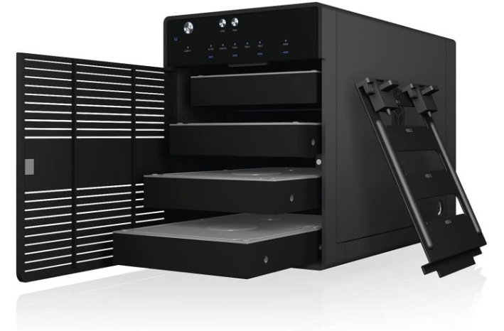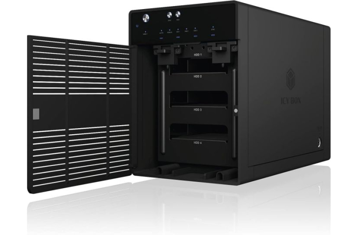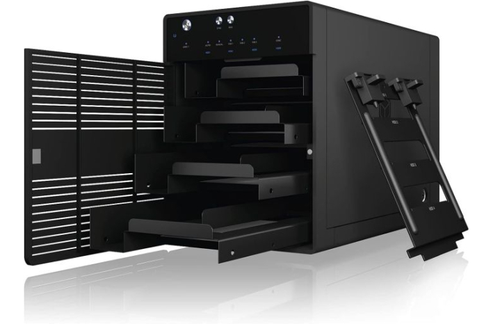 IB-3740-C31 je zmogljivo 4-režno USB-C ohišje za 2,5" in 3,5" SATA diske. Podpira posamezni način (SINGLE), kjer je vsak disk dostopen ločeno. USB 3.2 Gen 2 zagotavlja hitrosti do 10 Gbit/s, aluminijasto ohišje in temperaturno krmiljen 80 mm ventilator pa skrbita za učinkovito hlajenje. Z odstranljivimi pladnji je menjava diskov enostavna, LED indikatorji pa prikazujejo stanje delovanja in napake.