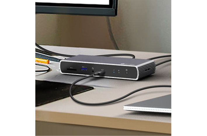 IB-DK4012-CPD je 9-v-1 mobilna priklopna postaja, zasnovana za prenosnike z USB-C. Ponuja dva HDMI izhoda za 4K in 2K prikaz, hiter prenos podatkov prek USB 3.2 Gen 1, branje SD/microSD kartic ter Gigabit Ethernet. USB-C PD 3.0 omogoča napajanje do 100 W. Kompaktna aluminijasto-plastična zasnova in pasivno hlajenje omogočata zanesljivo uporabo doma ali na poti.