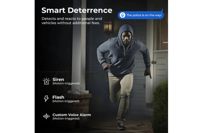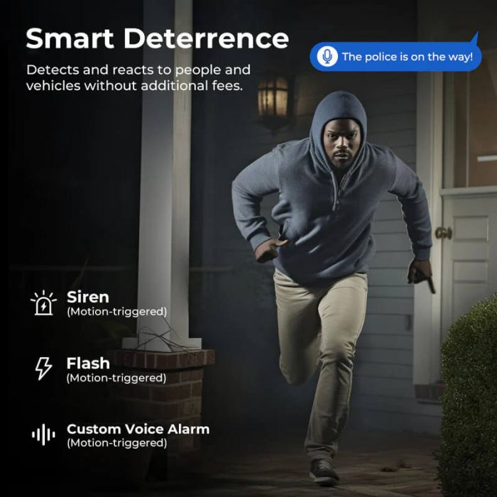 EC6 samodejno odvrne osumljence z uporabo sirene, bliskavice ali prilagojenega glasovnega opozorila. Te funkcije, sprožene z gibanjem, so na voljo brez dodatnih stroškov.