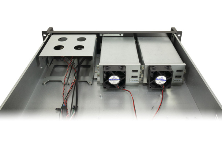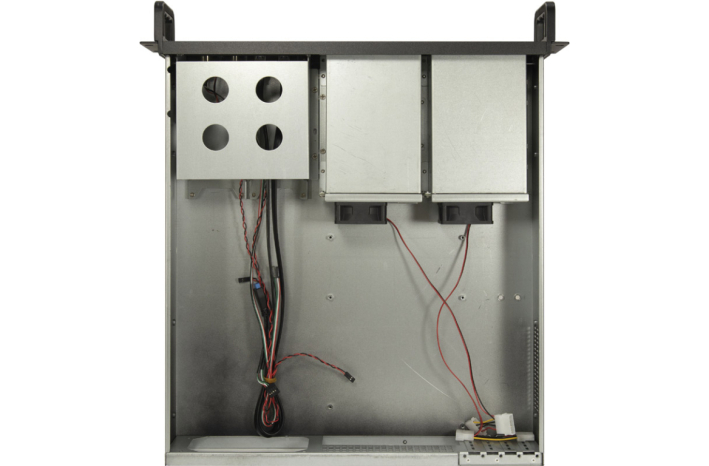 Torej 2U-2504 podpira napajalnike ATX (samo z 80 mm ventilatorjem), do štiri 2,5"/3,5" trde diske z možnostjo Hot-swap, dve notranji 2,5" napravi, eno zunanjo 5,25" napravo ter matične plošče MiniITX in mATX (omejitev velikosti).